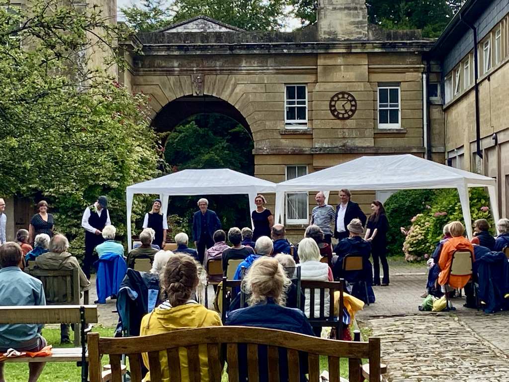 Thirty singers enjoyed a rewarding workshop, Lift up your Voice, led by Jane Harris in the delightful courtyard at the Ammerdown Centre, which turned out to be a perfect socially distanced outdoor singing venue. For many of the singers it was their first time singing with others in person since the Covid lockdown. Beginning with chords and interweaving scales it was wonderful to hear the blend of voices interspersed with birdsong. Songs included Jubilate Deo, a vibrant six part 16th century round which rang round the space, Jane’s new song Time to be here, written in the lockdown and Hallelujah for the joy, a joyous gospel song. Sunshine and showers were forecast but the sunshine won through.