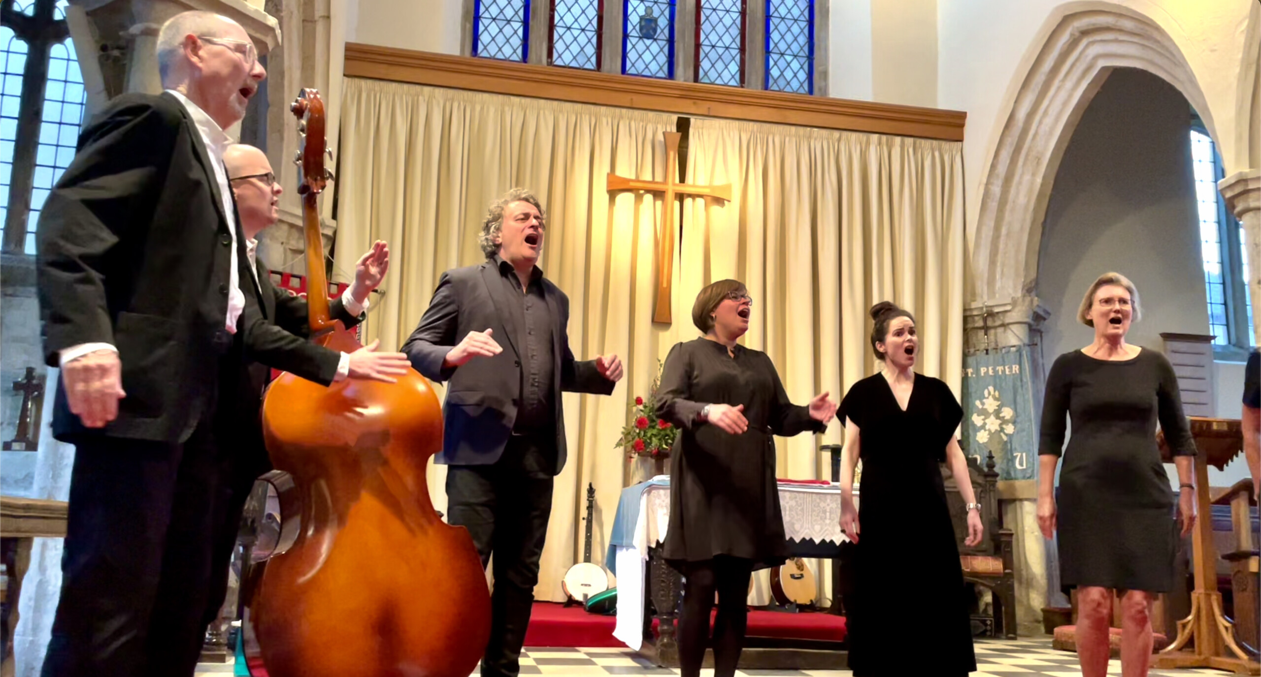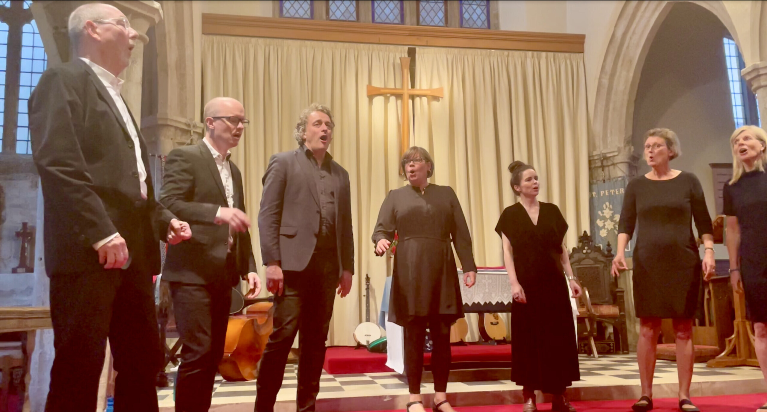 The programme included songs with vibrant rhythms, compelling lyrics and interweaving vocal lines, rooted in English and American harmony singing traditions; several new songs written by Jane, including the first live performance of Alleluia Amen; an evocative English folk song with a haunting violin and bass accompaniment; an exquisite Croatian love song; Ed Bersey (bass) with Helen Porter (piano); and vocal and instrumental trios by members of Rolling Harmony.