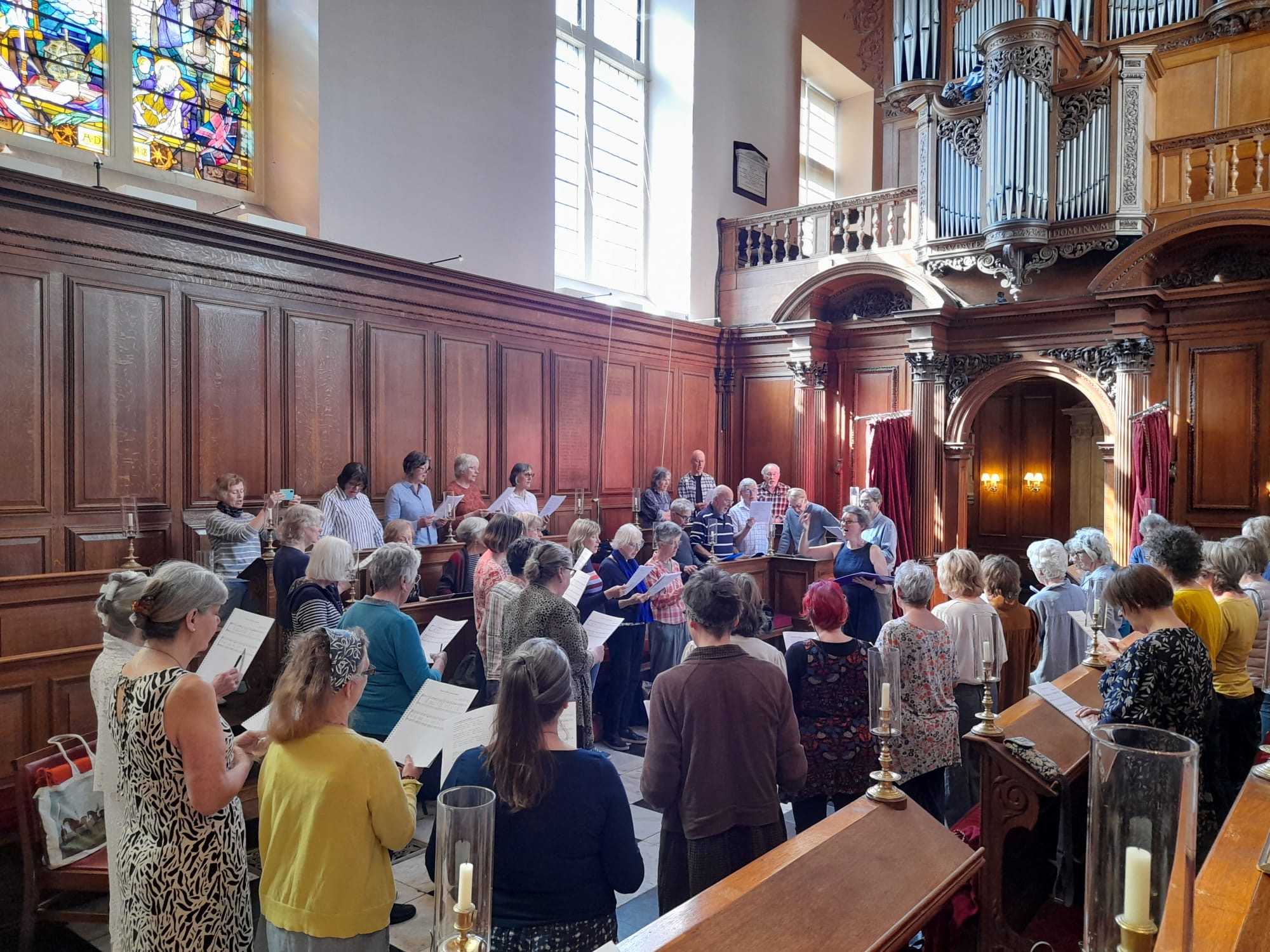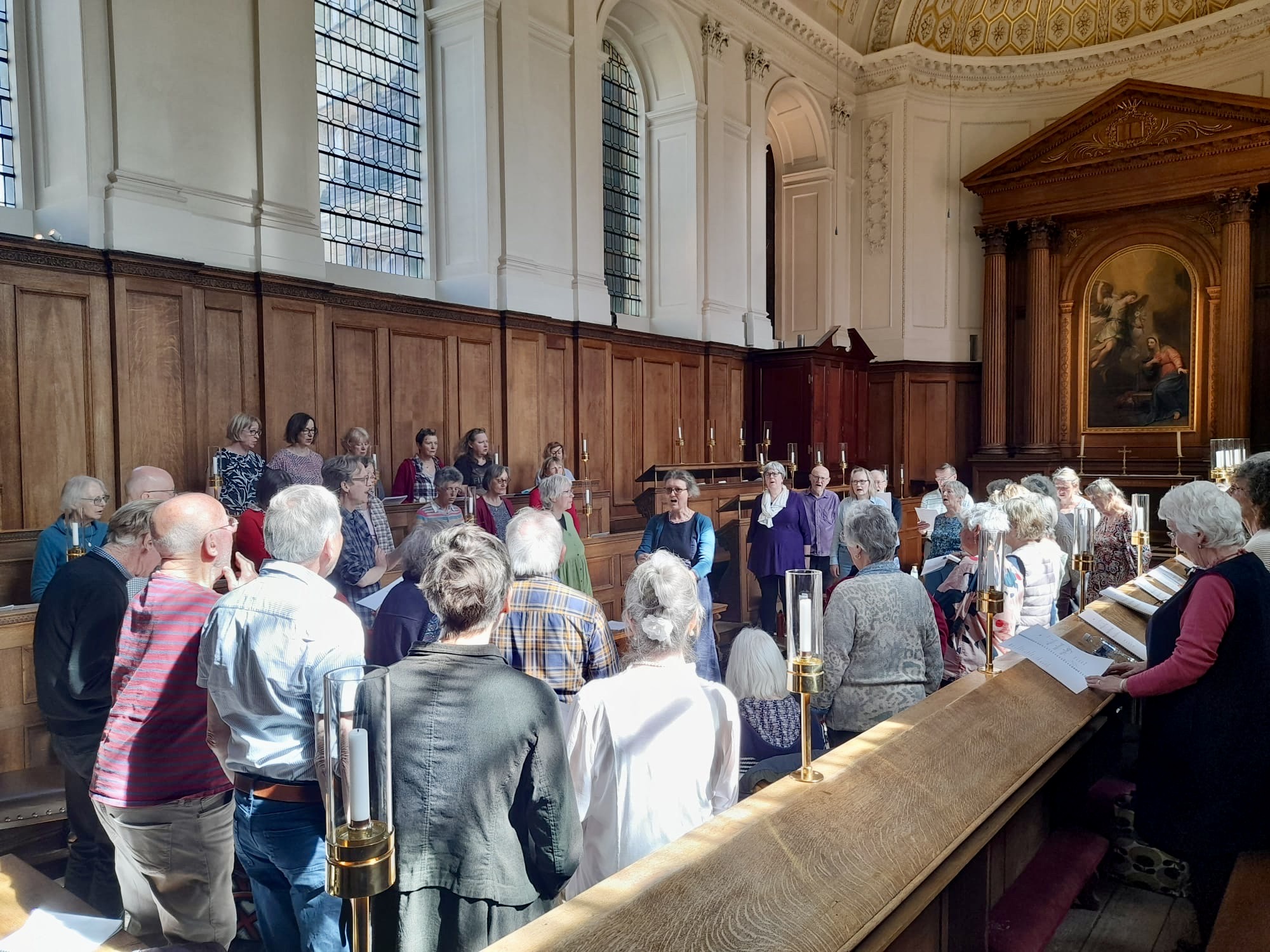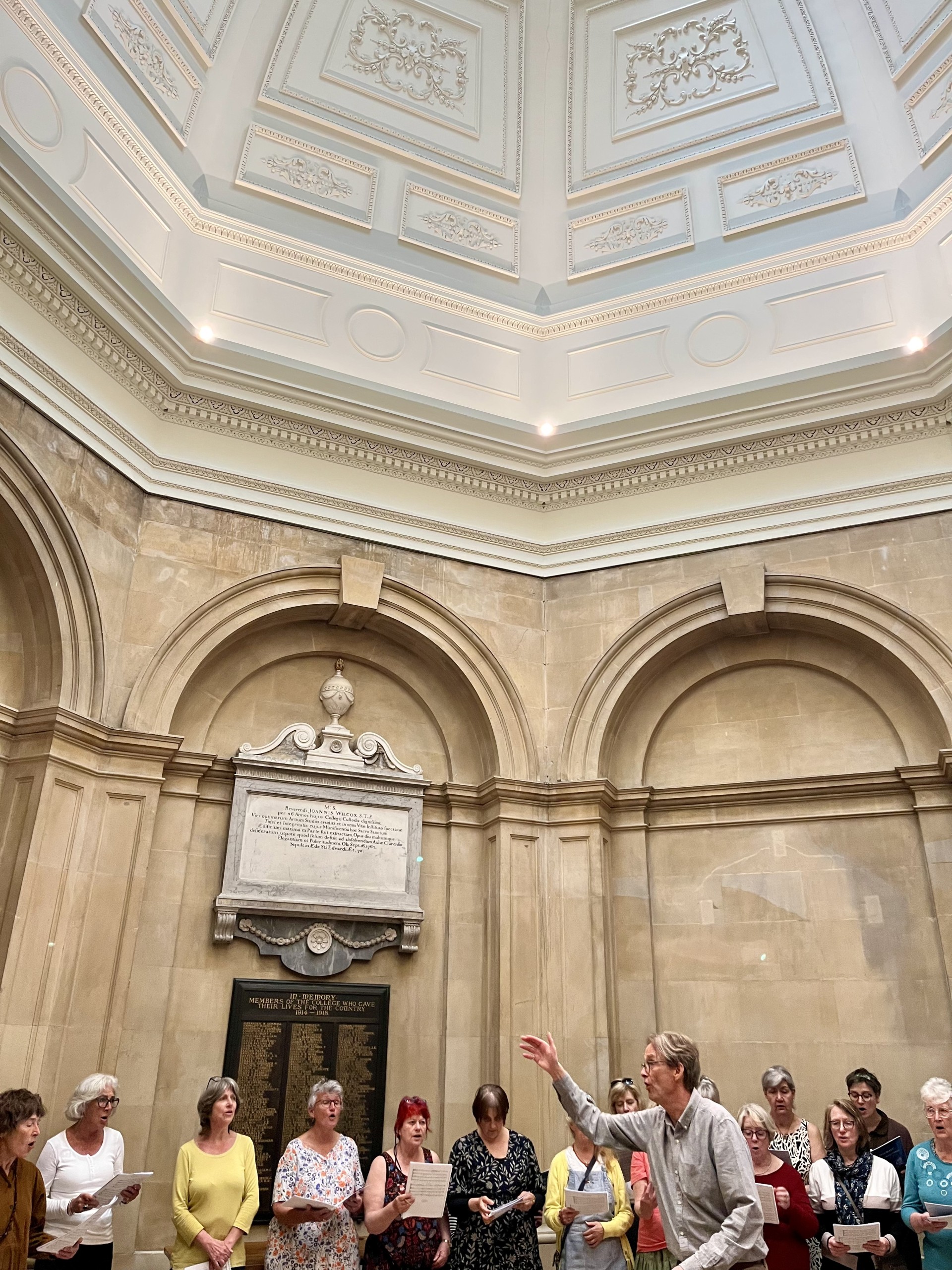Sing the Cambridge Colleges in April 2025 was an absolute joy, led by Jane Harris, Director of Songways and John Harrison, composer, choir director and singer from Vermont. Sixty singers came from far and wide including London, Cambridge, Oxford, Bristol, Bath, Wiltshire, Lincolnshire, North Wales, Caerphilly, Glasgow, Dunkeld, Manchester, Cheshire, Kent, Hereford, Gloucestershire, Somerset, Dorset, Devon, Cornwall, Vermont and California.