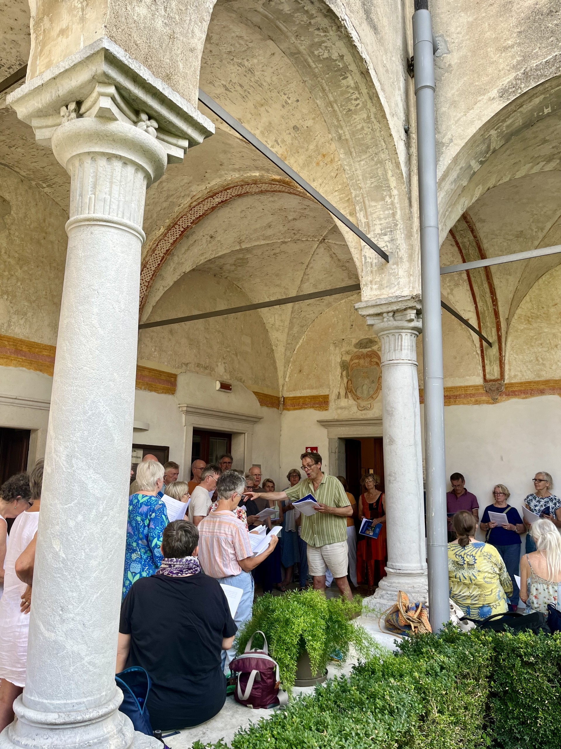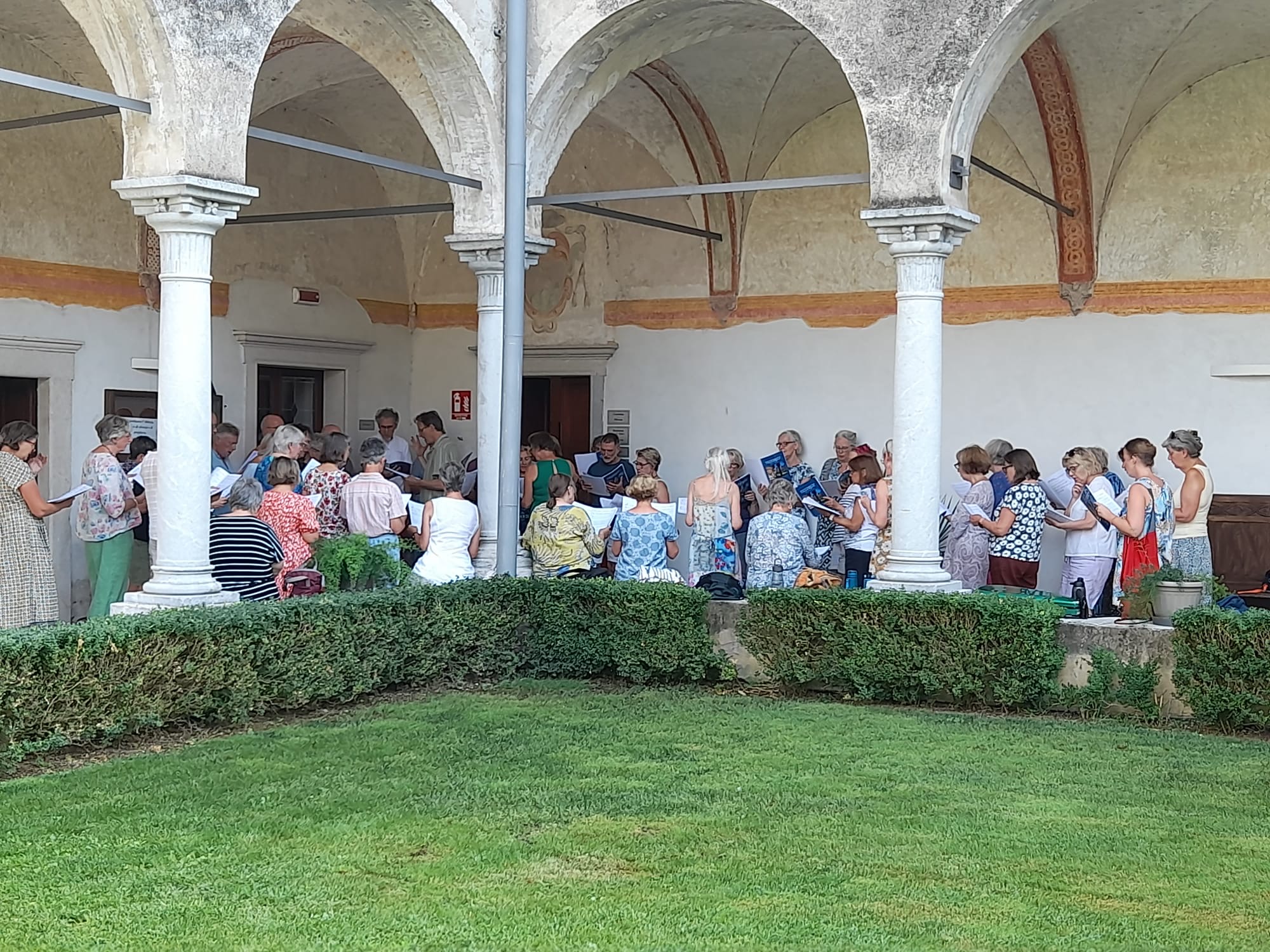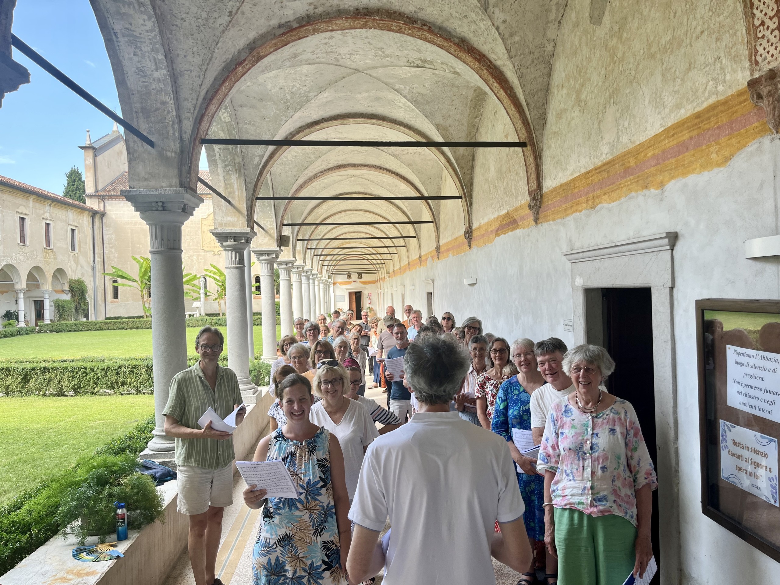 Fifty-five singers enjoyed a wonderful week of harmony singing in a magnificent 15th-century abbey led by John Harrison from Vermont, US, Jane Harris of Songways, and Carlo Pozzoli from Milan.